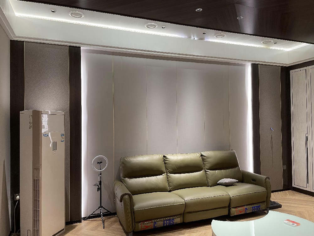 今天分享一套新中式全案,采用高迪米灰鎖扣板,煙熏木格柵板及雪白玉蕊鎖扣板,點綴絲織咖與絲織駝輕奢板搭配的新中式家裝案例?! ∪拷饘倬€方與圓,山水畫等元素貫穿其中,客廳采用雪白玉蕊頂面裝飾,加金屬線框點狀孔燈為主,配合簡約的家具造型,沉穩的色調,美的淡然?! γ娌捎酶叩厦谆益i扣板加煙熏木格柵板···