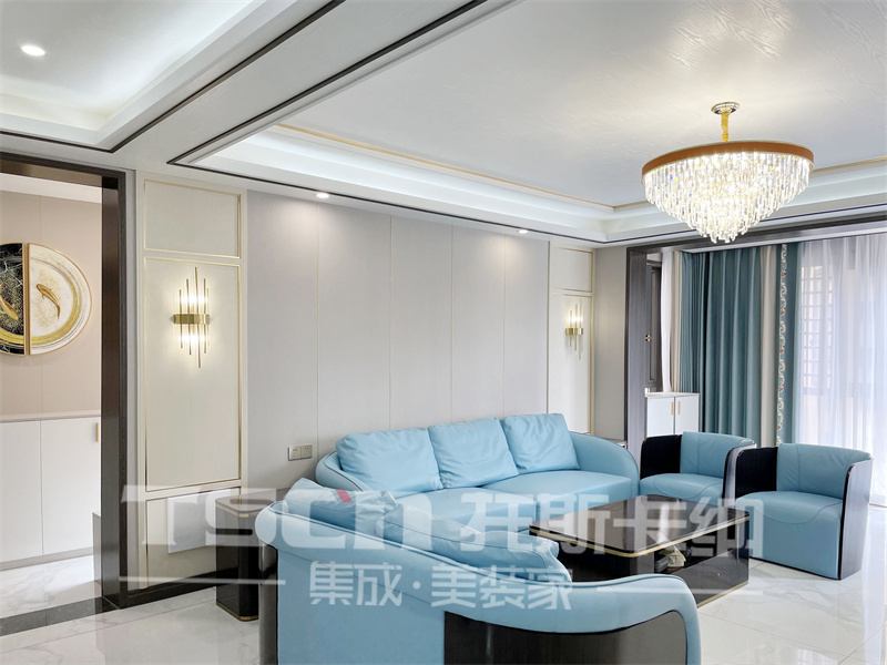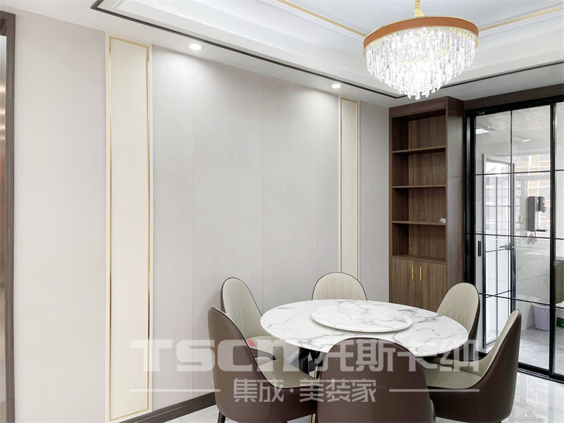 設(shè)計(jì)要素:全屋護(hù)墻板,搭配金屬細(xì)線條,打造精致輕奢感。整體硬裝色調(diào)淡雅,搭配深色軟裝,深淺相宜,彰顯貴氣。